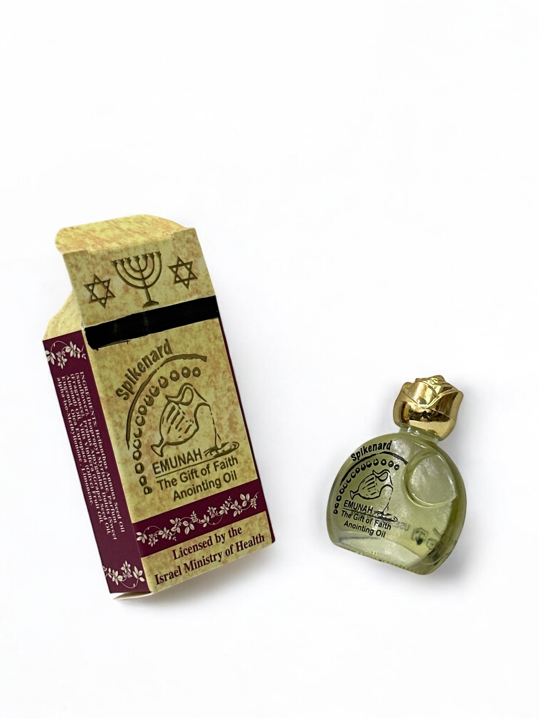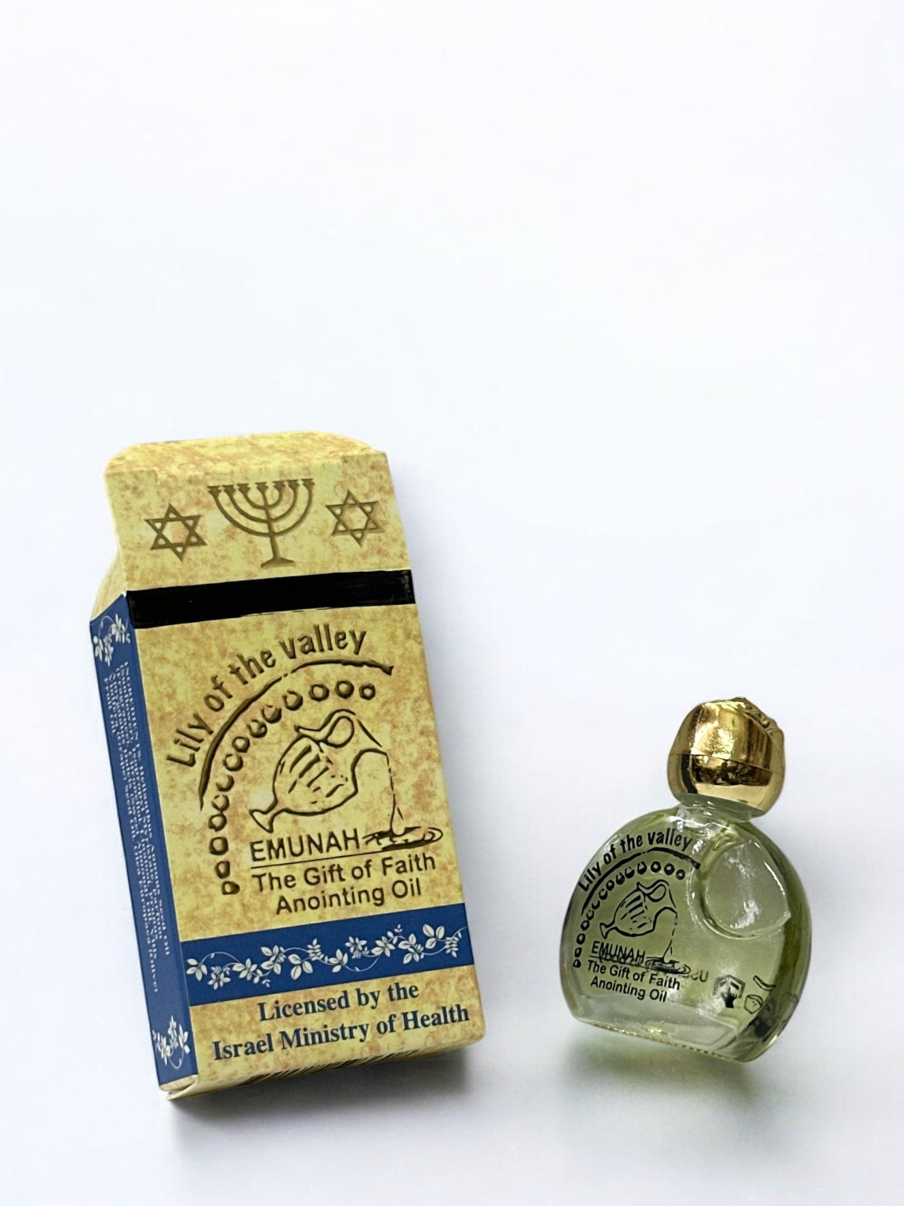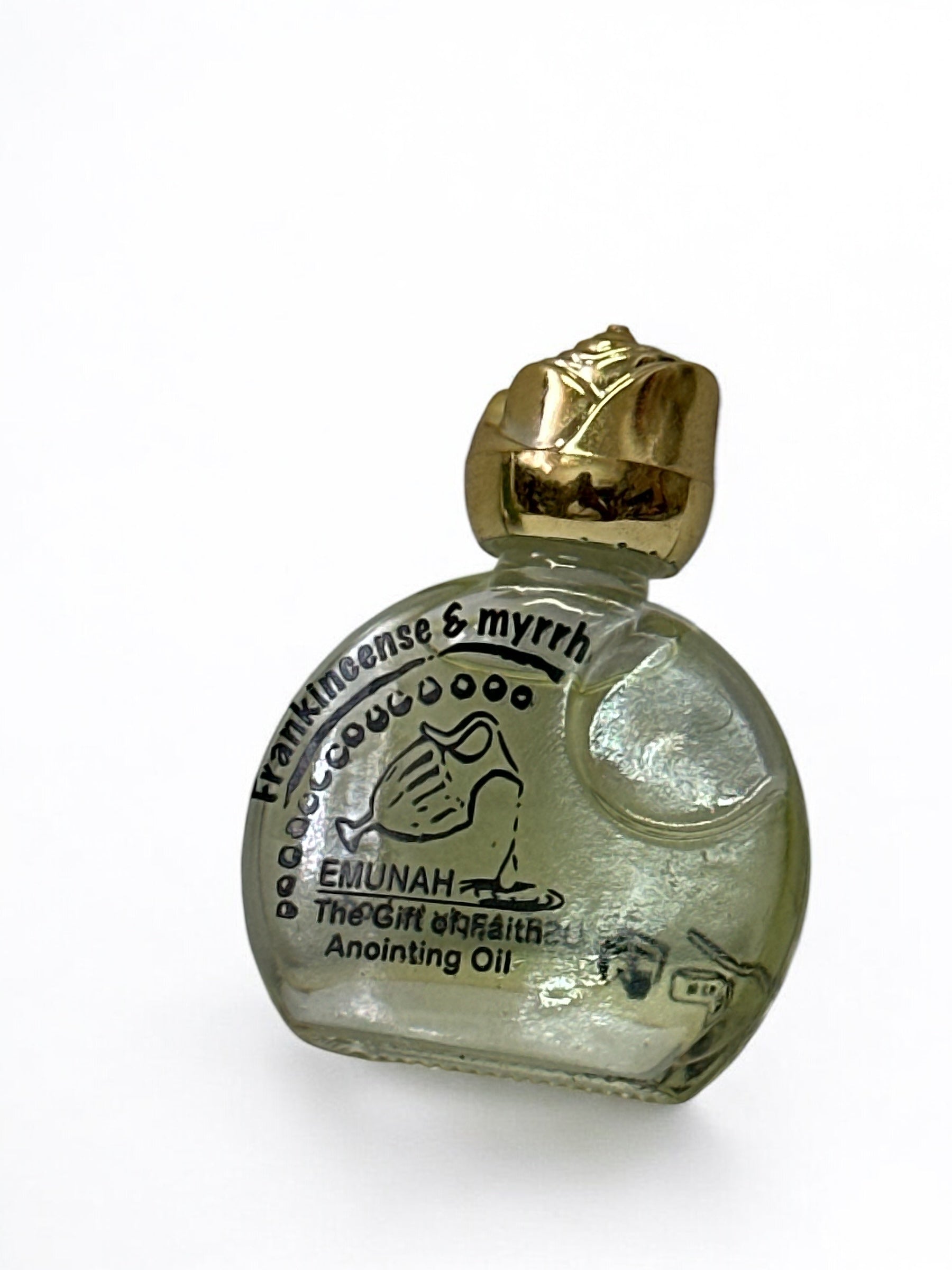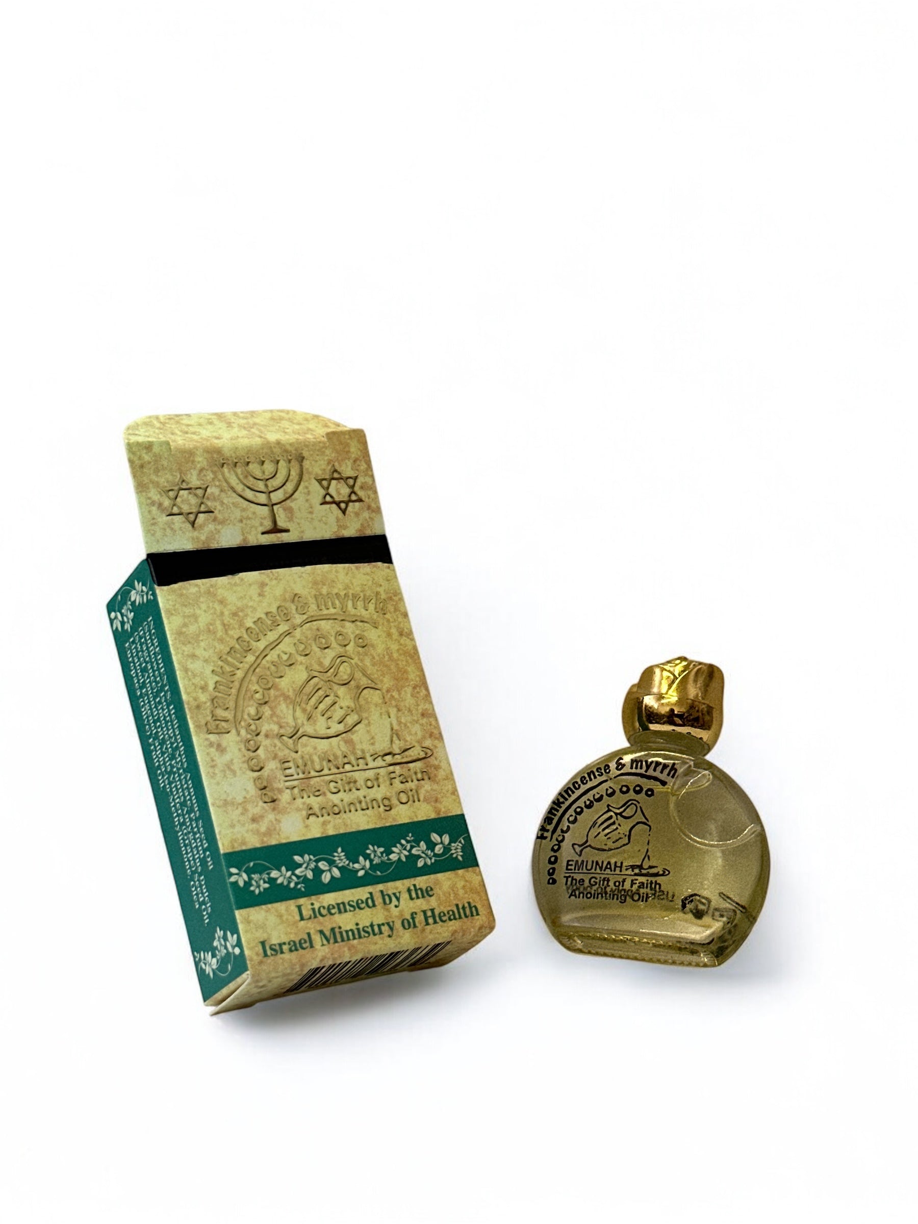 Experience Sacred Elegance from the Holy Land. Treasure this authentic frankincense and myrrh anointing oil "EMUNAH - The Gift of Faith" featuring the biblical scents mentioned in scripture and used in ancient temple ceremonies. Licensed by the Israel Ministry of Health and made in Israel, this premium anointing oil combines the sacred aromas of frankincense and myrrh in a beautifully designed glass bottle, creating a spiritual experience that connects you to biblical tradition and ancient worship practices.