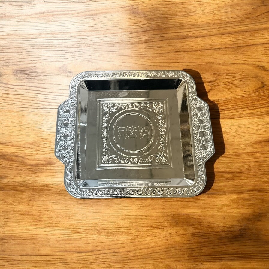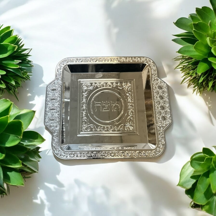 Add grace to your Pesach celebration with our beautifully designed silver-style Matzah plate. Perfect for displaying your ceremonial Matzah during the Seder and throughout Passover.