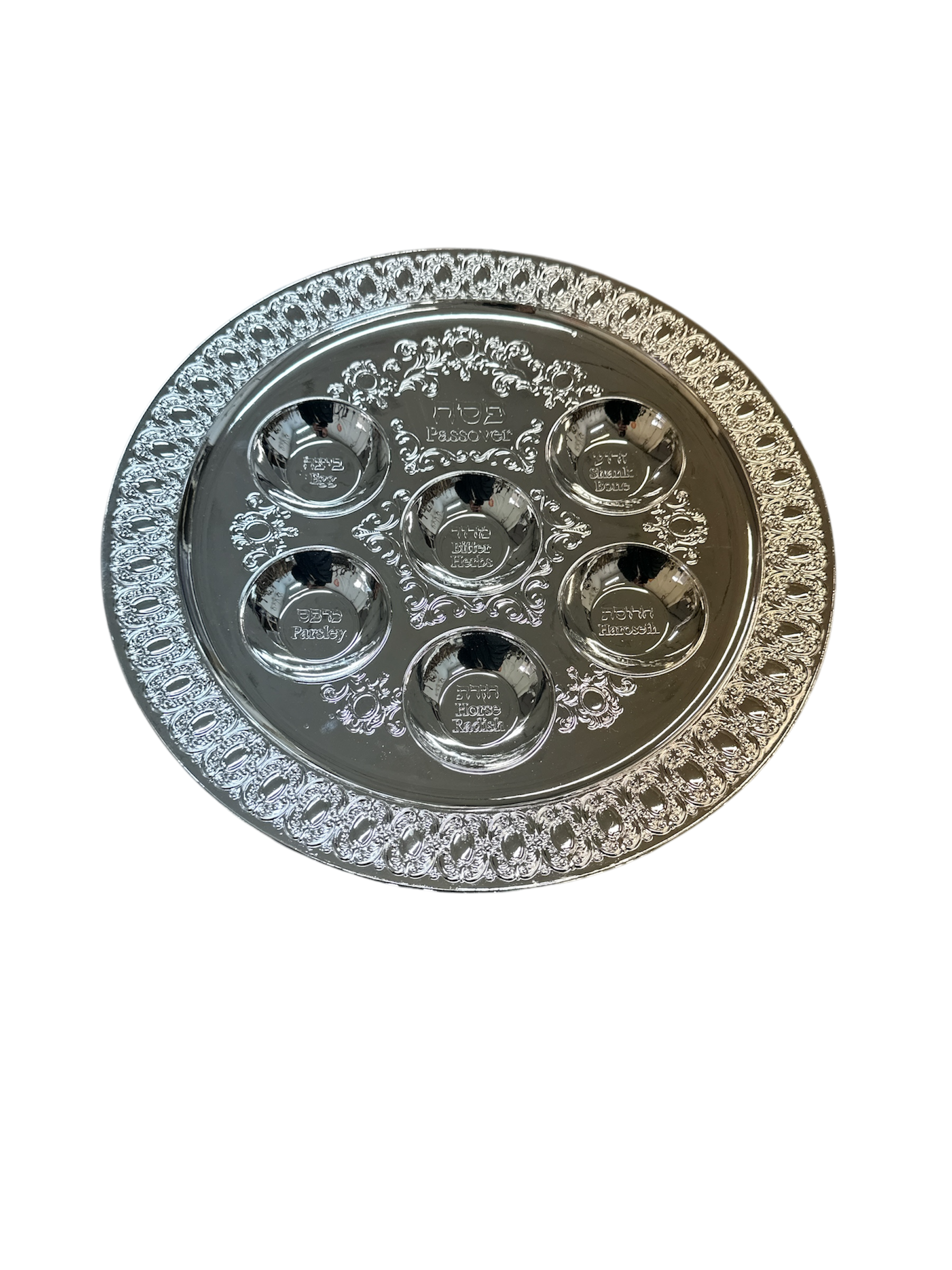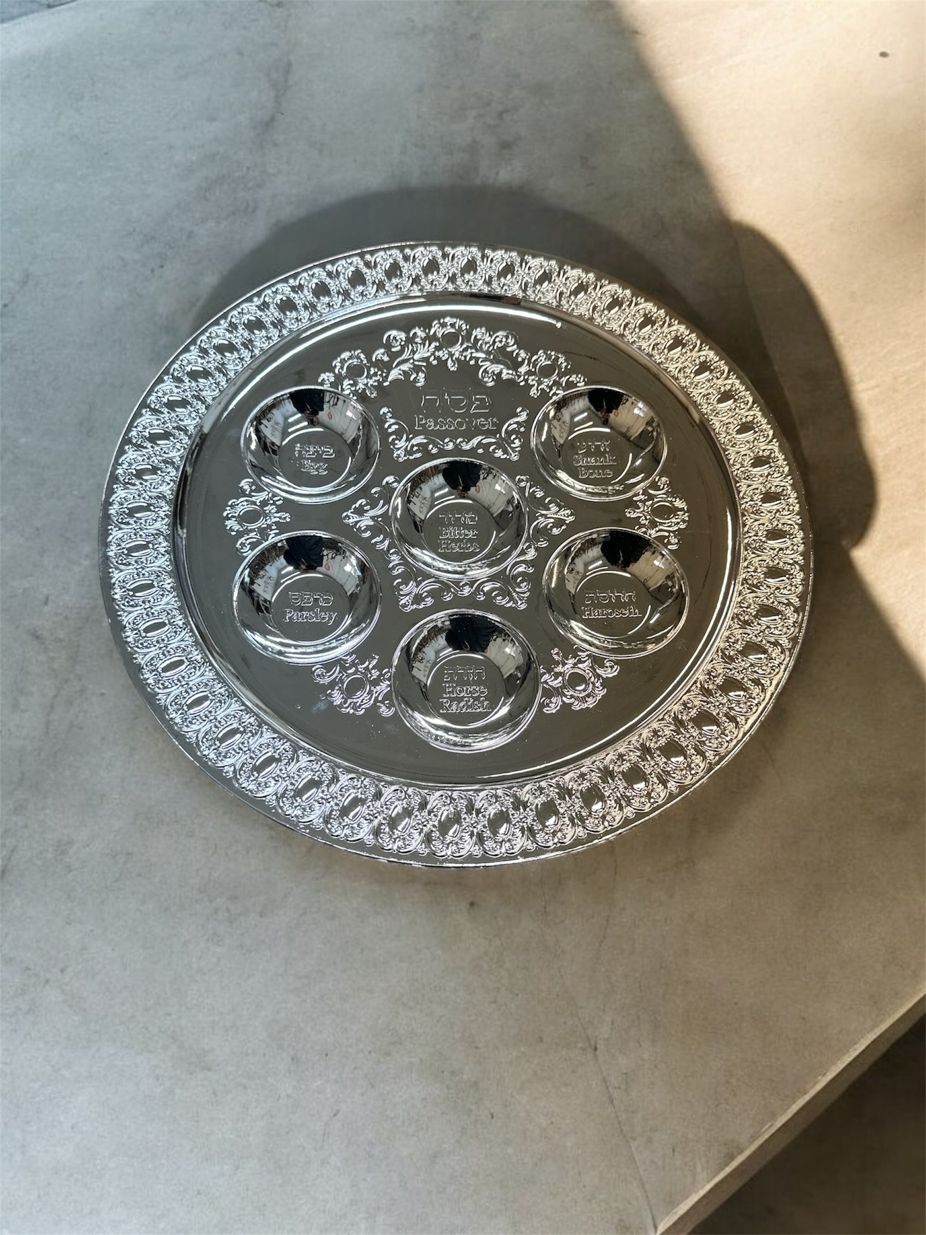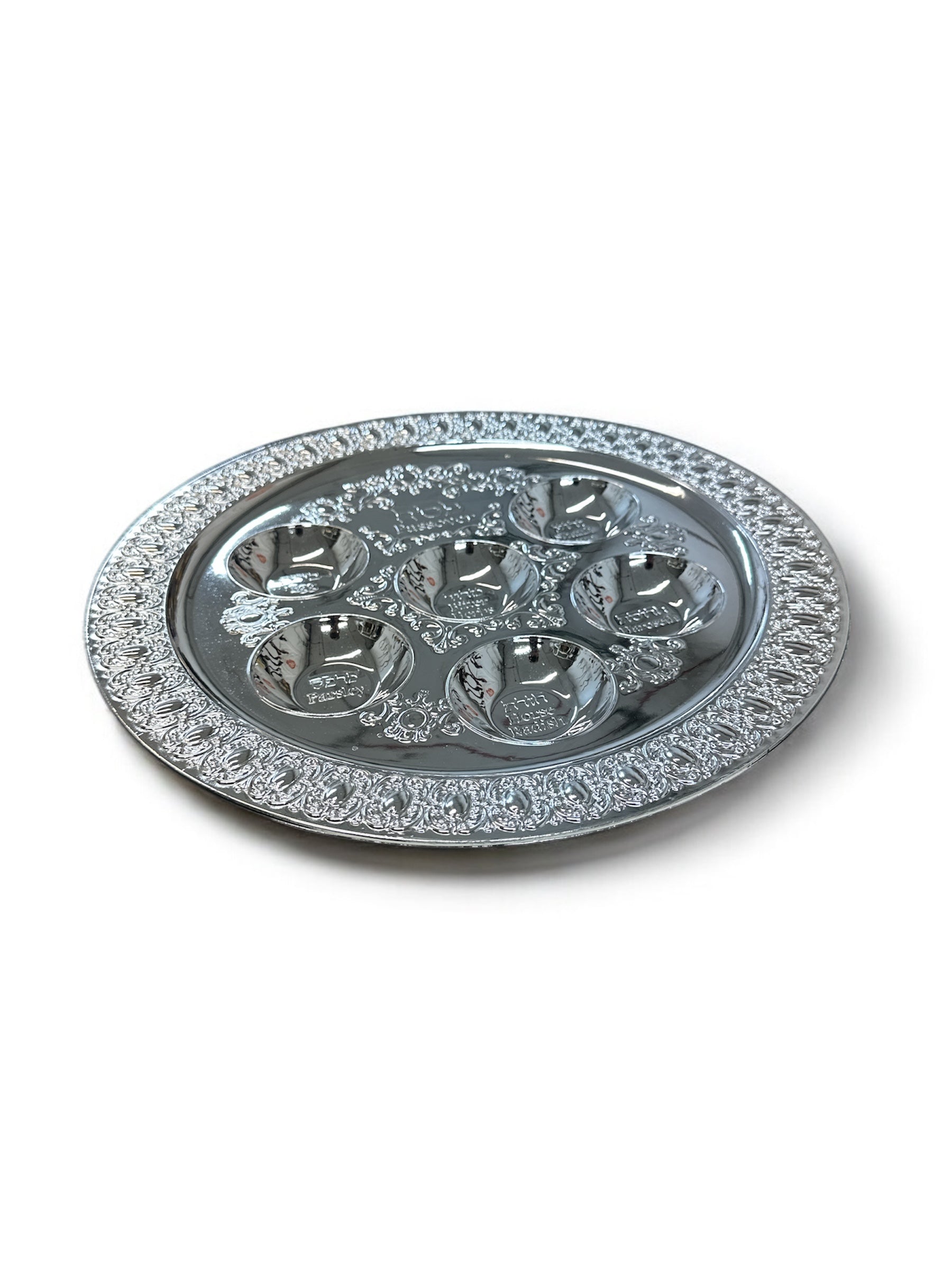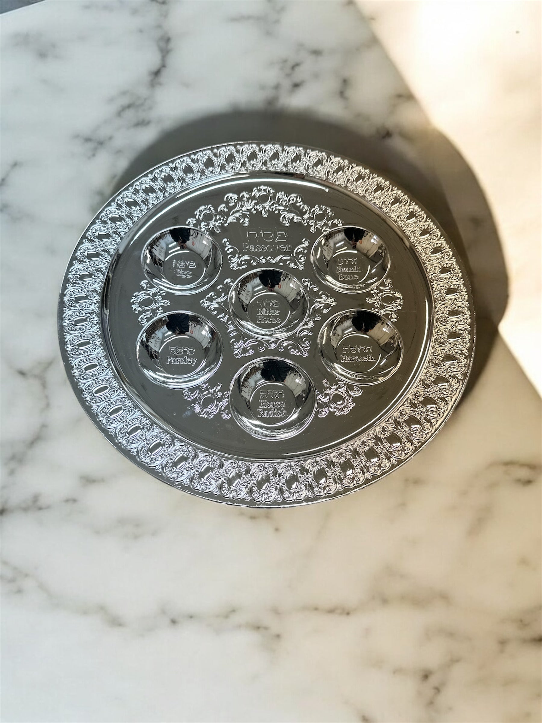 Transform your Pesach celebration with our beautifully designed silver-style Seder plate. Perfect for both traditional and modern Jewish homes.
